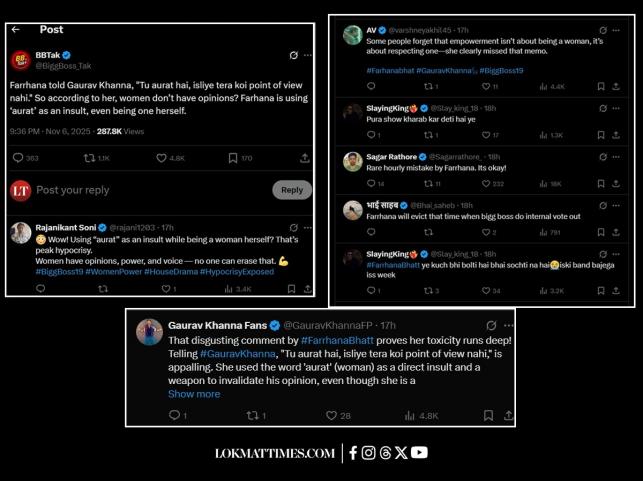 Post removal, fight broke out between Farrhana, Tanya and GK, during which Farrhana called him Tu aurat hain. This statement of her's has divided internet. BB Tak highlighted a tweet where Farrhana told Gaurav Khanna, "Tu aurat hai, isliye tera koi point of view nahi," implying women lack opinions. This sparked outrage, with fans criticizing Farrhana for using "aurat" as an insult and questioning her understanding of female empowerment. One user pointed out that empowerment is about respecting women, a memo Farrhana seemed to have missed.