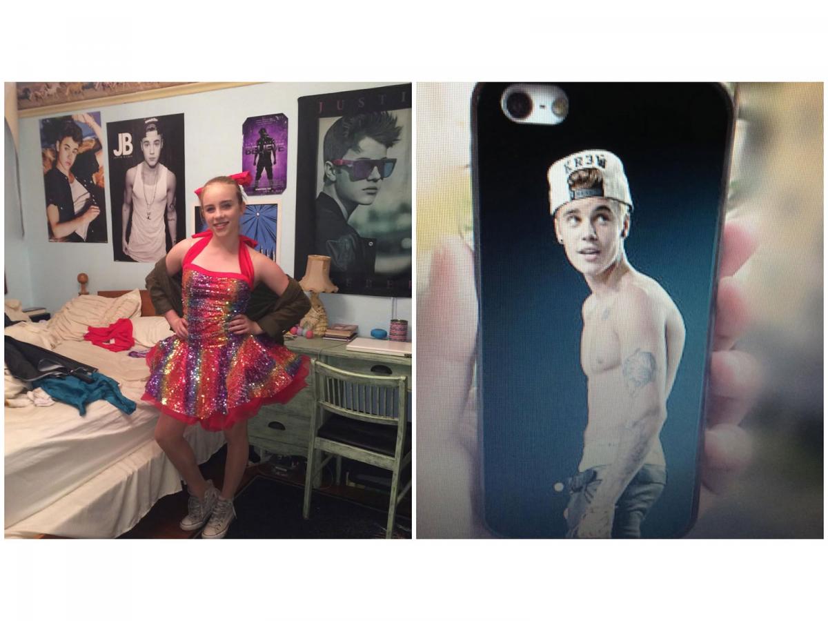 The carousel of images included a childhood photograph of Billie dressed in a rainbow sequin dance costume paired with white Converse shoes, standing in a bedroom covered with Justin Bieber posters. Another slide featured a whiteboard where she had rewritten lyrics from Aqua's 'Barbie Girl', adding fun references to Bieber's birthday, his Canadian roots, and her teenage obsession.