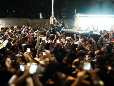 One of the click shows, Ahan was gathered with his fans and clicking selfies from the car.