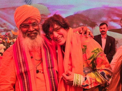 The actor also visited the birthplace of Lord Hanuman, Hanumanji Mandir near Anjaneri hills in Nashik. One of the pictures also shows the actor posing with Sakshi Maharaj.
