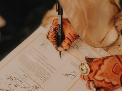 Taking to her official Instagram handle, Zaira uploaded two photographs from what seemed to be an intimate wedding ceremony. The primary photo showed her signing her nikaah nama, the marriage contract, with her hand decorated with intricate mehendi designs and adorned with a statement emerald ring.