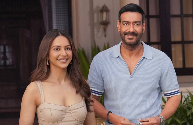 Made on a reported budget of Rs 150 crore, the romantic comedy follows the story of Ashish and Ayesha as they face family resistance due to their age gap. The cast includes Ajay Devgn, Rakul Preet Singh, Meezaan Jafri, R Madhavan, Jaaved Jaaferi, Ishita Dutta, Gautami Kapoor and Sanjeev Seth. The film has been directed by Anshul Sharma and written by Luv Ranjan and Tarun Jain. It is produced by T-Series and Luv Films. The runtime is 2 hours and 27 minutes.