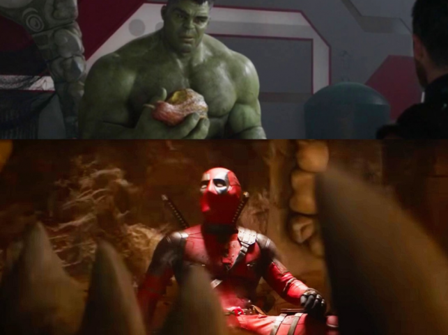 · Hulk's Sakaar Bed: The trailer offers a glimpse of the bed used by Hulk when he was a gladiator on the planet Sakaar in "Thor: Ragnarok" (2017). Initially, it seemed Deadpool might travel to that movie's setting, but the new footage reveals the bed is inside Giant-Man's skull, seemingly owned by the villain Cassandra Nova.