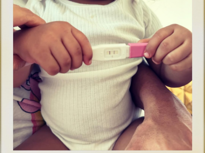 She took to her official Instagram handle and published a cute pic of her daughter Dua holding a positive pregnancy test.