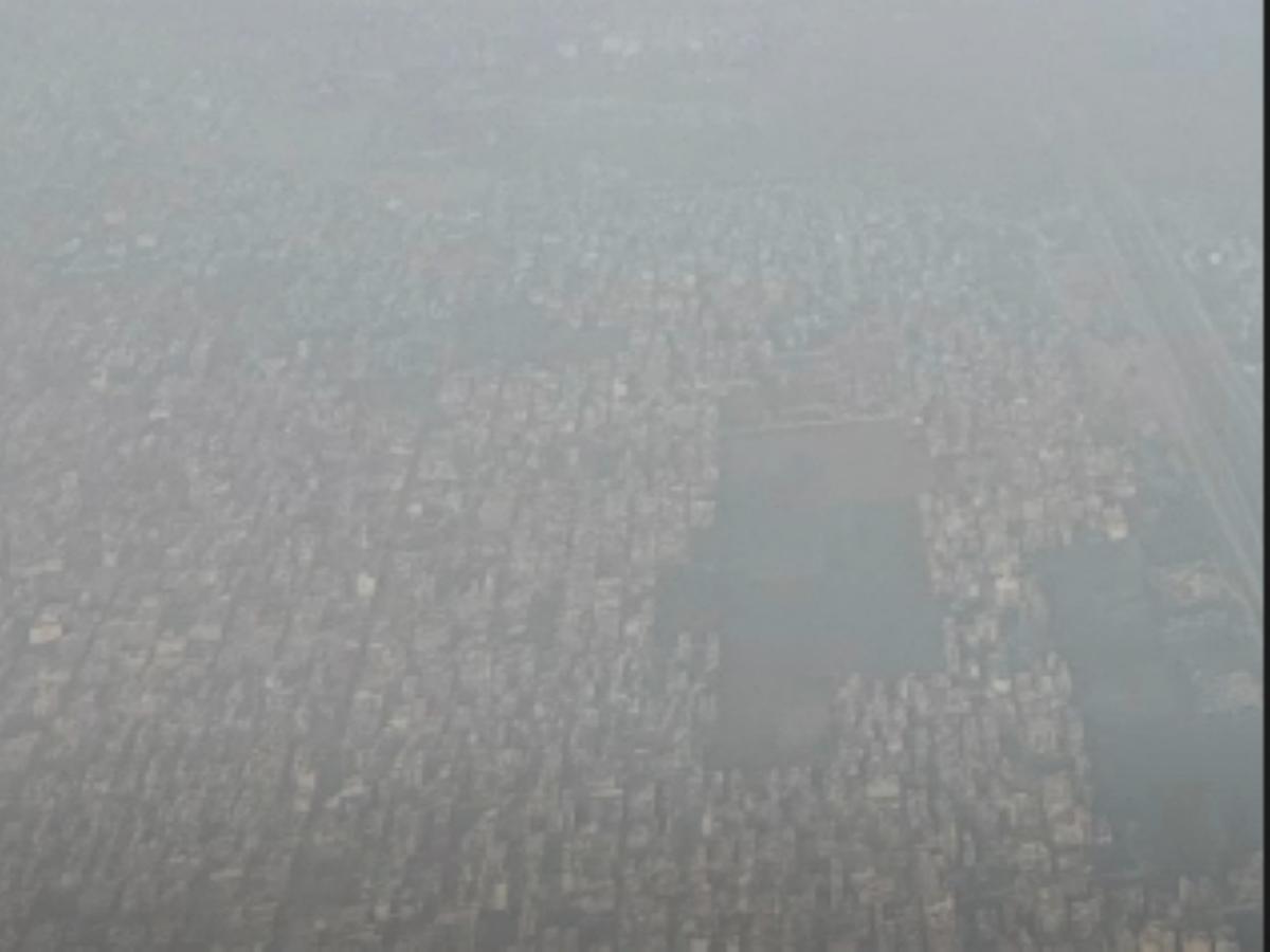 Homi took to Instagram and shared a picture of Delhi's hazy sky from the flight.