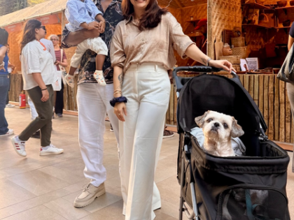 The actress posted a family photo on social media. In the image, Devoleena is seen smiling as she stands beside her husband, Shanawaz, who is seen holding their little son Joy in his arms. The family appears to be strolling through what looks like a festive or flea market. The actress is also seen pushing a stroller carrying their pet dog.