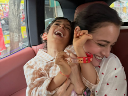 In the last still, Dia was clicked, sharing a candid laugh with her son in the car.