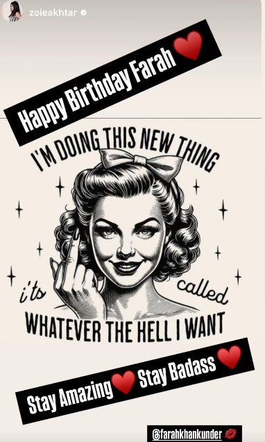 Taking to her Instagram handle, the 'Dil Dhadkne Do' director Zoya Akhtar penned an unfiltered birthday wish to the filmmaker. She called her 'amazing' and shared a funny poster of a woman which reads, "I'm doing this new thing it's called whatever the hell I want."