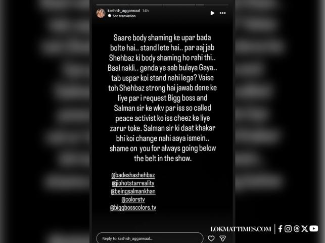 While reacting to the "body shaming" statement, Shehbaz's girlfriend Kashish Aggarwaal took to Instagram to urge Bigg Boss and host Salman Khan to take action on this.