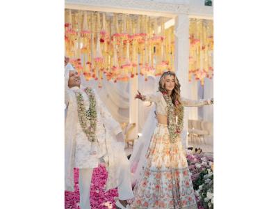 The pictures captured their happy moments in which the couple can be seen celebrating. In one of them, they can be seen dancing with joy, and another one shows Dhwan putting sindoor on Sophie's head, marking the traditional wedding ritual.