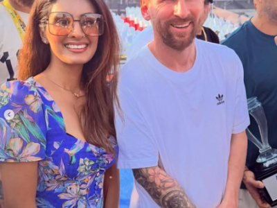 ‘The Train’ actress appreciated the police force for ensuring a seamless experience for fans and attendees. Taking to her Instagram, Geeta shared a few photos and videos showing her posing alongside Argentine footballer Lionel Messi, along with her husband, Harbhajan Singh, and their children. In the video, the actress is seen striking a pose with Messi for the paparazzi. She also shared her solo images with the ace footballer.