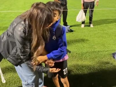 The actress shared a video on her social media account wherein her younger son, geared up for his upcoming match, was seen bidding adieu to his mother Genelia and father Riteish Deshmukh.