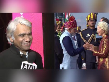 Jaipur (Rajasthan) [India], February 8 : President of the European Commission Ursula von der Leyen made a striking sartorial statement at India's 77th Republic Day parade by wearing a Banarasi brocade bandhgala jacket designed by noted Indian designer Rajesh Pratap Singh, drawing attention to India's rich textile heritage.