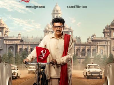The makers today unveiled the first look poster, introducing Dr Shiva Rajkumar in a powerful yet understated avatar. Wearing spectacles, dressed in a simple white kurta-pajama and a red scarf draped over his shoulder, the protagonist is seen walking alongside a bicycle on a wide road, with Assembly in the backdrop. A red flag featuring the sickle and hammer, a symbol of leftist ideology, hangs from the bicycle, clearly signifying the character’s political leanings and the ideological core of the narrative. Shiva Rajkumar effortlessly embodies the essence of Gummadi Narsaiah, exuding humility and quiet strength.