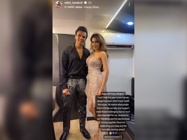 Nikki wished Abhijeet Sawant a happy birthday in an Instagram post, sharing a lovely photo together. In her caption, she expressed gratitude for his unwavering support during their time in the Bigg Boss house, stating, "Happy Birthday Abhijit! Your support helped me through tough times, and I'm thankful for our friendship."