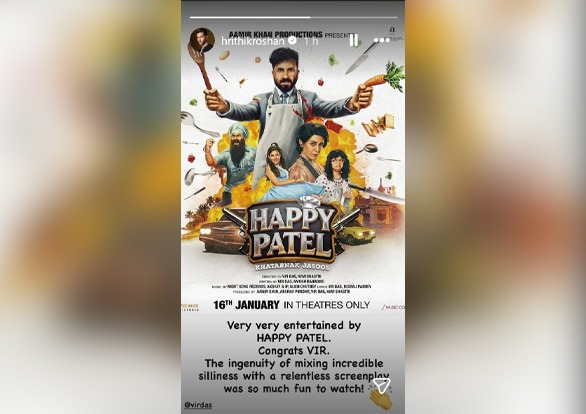 Sharing his reaction, Hrithik wrote on his Instagram, “Very very entertained by Happy Patel. Congrats Vir. The ingenuity of mixing incredible silliness with a relentless screenplay was so much fun to watch!” Hrithik’s endorsement adds to the growing buzz around Happy Patel, which marks Vir Das’ first outing as a director and showcases a playful blend of absurd humour and fast-paced storytelling. The film has been drawing attention for its unconventional tone and fresh approach to the genre, with industry voices now joining audiences in