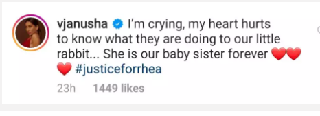 Rhea Chakraborty has been at the centre of a major controversy after the tragice demise of Suahant Singh Rajput. The 28-year old has been under the media lens after she was named the main accused in the death of her boyfriend on June 14. With Bollywood clearly divided on the issue, Rhea’s close friend Shibani Dandekar came out in support of her and penned a lengthy note on social media. . Replying on the post, Shibani’s sister Anusha Dandekar also expressed support for Rhea and commented, “I’m crying, my heart hurts to know what they are doing to our little rabbit... She is our baby sister forever #justiceforrhea”.In her note on Instagram, Shibani had shared, “I’ve known Rhea Chakraborty since she was 16years old! Vibrant, strong, vivacious, such a bright spark… so full of life. I've witnessed such a stark contrast to this side of her personality over the last few months as her and her family (some of the kindest warmest best people you will ever meet) have experienced the most unimaginable trauma! We have watched the media behave like complete vultures on a witch-hunt, vilifying and torturing an innocent family to breaking point!”