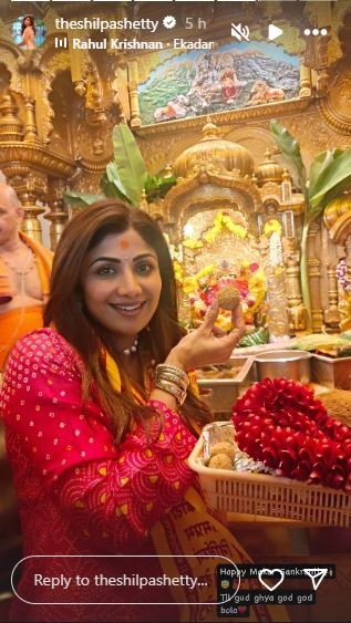 On Tuesday, Shilpa posted pictures on her Instagram Story and wrote, "Happy Makar Sankranti. Til gud ghya god god bola."