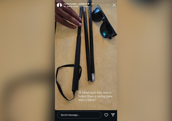 Now, Nawaz has sparked curiosity with a cryptic post on his Instagram story. The actor shared an image of a walking cane typically used by visually impaired individuals, placed alongside a pair of dark sunglasses. Accompanying this was a thought-provoking caption: “A blind man who sees is better than a seeing man who is blind!”