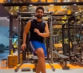 Jackky took to the Stories section of his Instagram handle and uploaded a video of himself grooving to the track in the gym. However, instead of keeping a glass on his feet, he used a dumbbell.