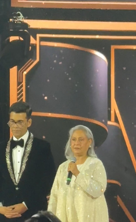 Teasing her a little further, Karan said, "I am sorry we are doing this stupidity, but we consider you as our mother. Shah Rukh and I have taken it upon ourselves to give you the award. We feel very happy, more than you. God bless you, and thank you so much. Karan added with warmth, I have the right to call her Aunty J. She is like a mother to me. She has known me since childhood. I have had the amazing fortune of even directing Aunty Jaya. Her legacy precedes us. But more than anything else, it's a warm heart, and everyone should know that, especially in the paparazzi."
