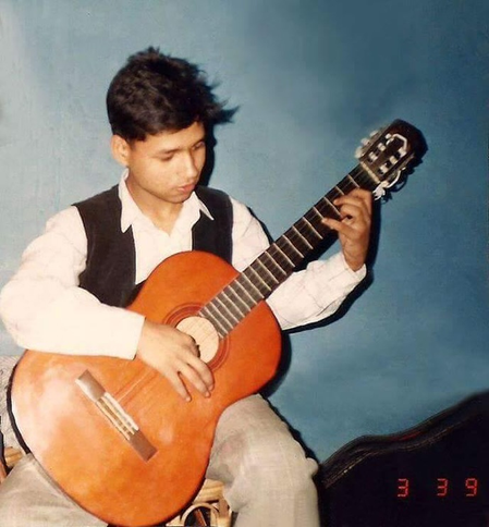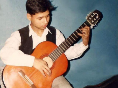 The photo had a young Kailash Kher holding a guitar, most likely in the middle of a practise session.