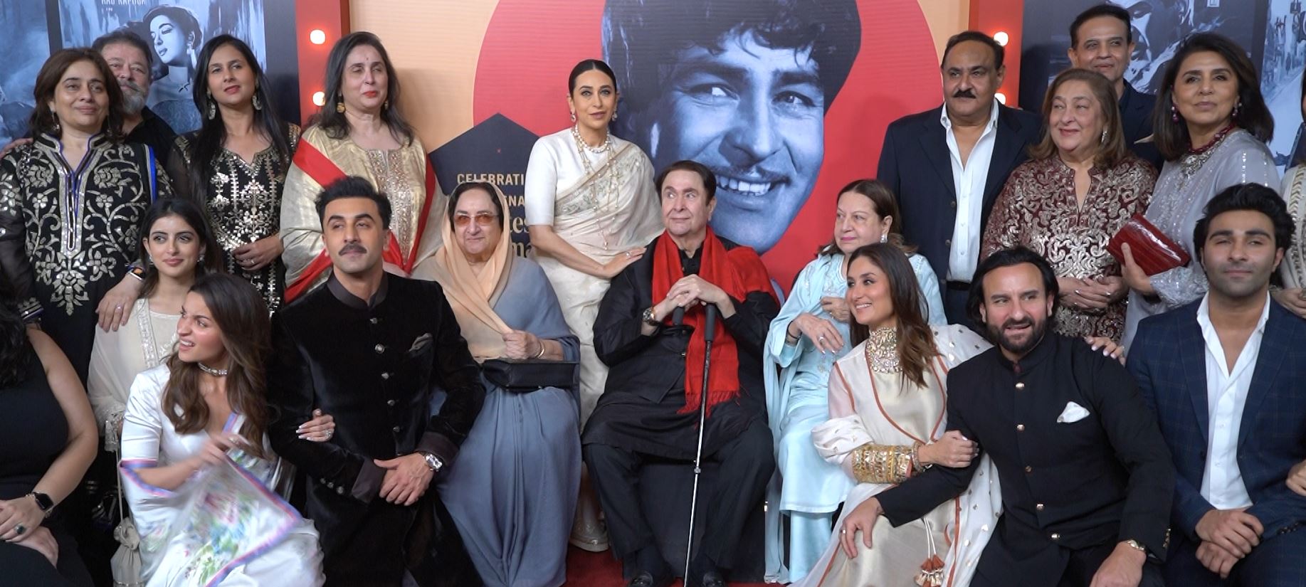 At the opening night of RK@100 celebrations, the Kapoor family posed for an iconic picture together. From Raj Kapoor's son Randhir Kapoor, daughter Rima Jain, daughters-in-law Babita and Neetu Kapoor, to grandson Ranbir Kapoor and granddaughters Kareena Kapoor, Karisma Kapoor, and Riddhima Kapoor Sahni, the 'Kapoor Khandaan' arrived in style to celebrate the legendary filmmaker's birth centenary. Their presence highlighted the family's collective pride in preserving and celebrating Raj Kapoor's extraordinary legacy.