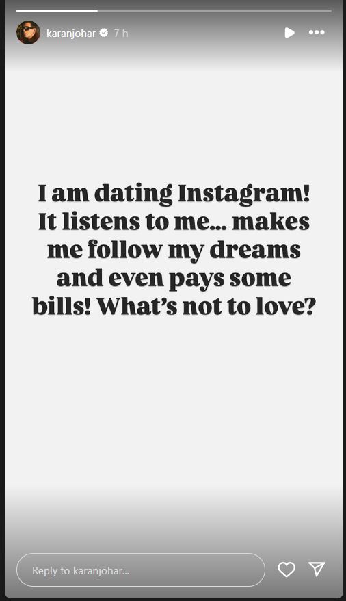 On Sunday, Karan posted a humorous Story on the platform where he shared how Instagram supports him and even "pays his bills."