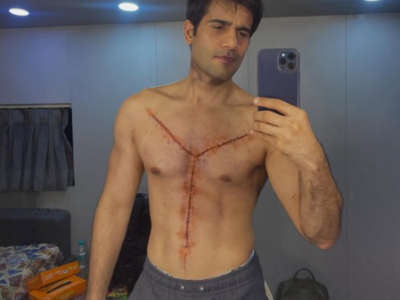 Karan took to Instagram, where he shared a string of images from the sets of the show. The first picture had him showcasing realistic injury marks and stitched wounds. In the second and third images Karan is lying on a medical gurney, photographed from above. He is bare-chested flaunting prosthetics injury marks across his upper torso.