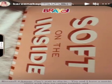 Kareena Kapoor Khan enjoyed a movie night with her son Taimur and they also had a special treat from producer Rhea Kapoor. The duo was surprised with an ice cream “Rhea!!! Amaze. Can’t wait to dig in...Tim and I have a movie night with this ice cream tonight, girl,” thanked Kareena in her gram story.
