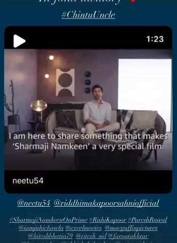 Rishi Kapoor's film 'Sharmaji Namkeen' is all set to release on an OTT platform. And ahead of the film Kareena Kapoor Khan has penned a heartfelt note for her uncle after Ranbir Kapoor. Taking her Instagram the actress reshare the video and said ''You must have heard ‘The show must go on’, but I’ve seen Papa live his life. ‘Sharmaji Namkeen’ will always be my one of the fondest memories of my father. Up on screen, bringing a smile to his countless fans.''