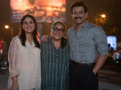 The production banner Junglee Pictures posted a picture of Kareena, Prithviraj and Meghna smiling for the camera as they posed for a picture.