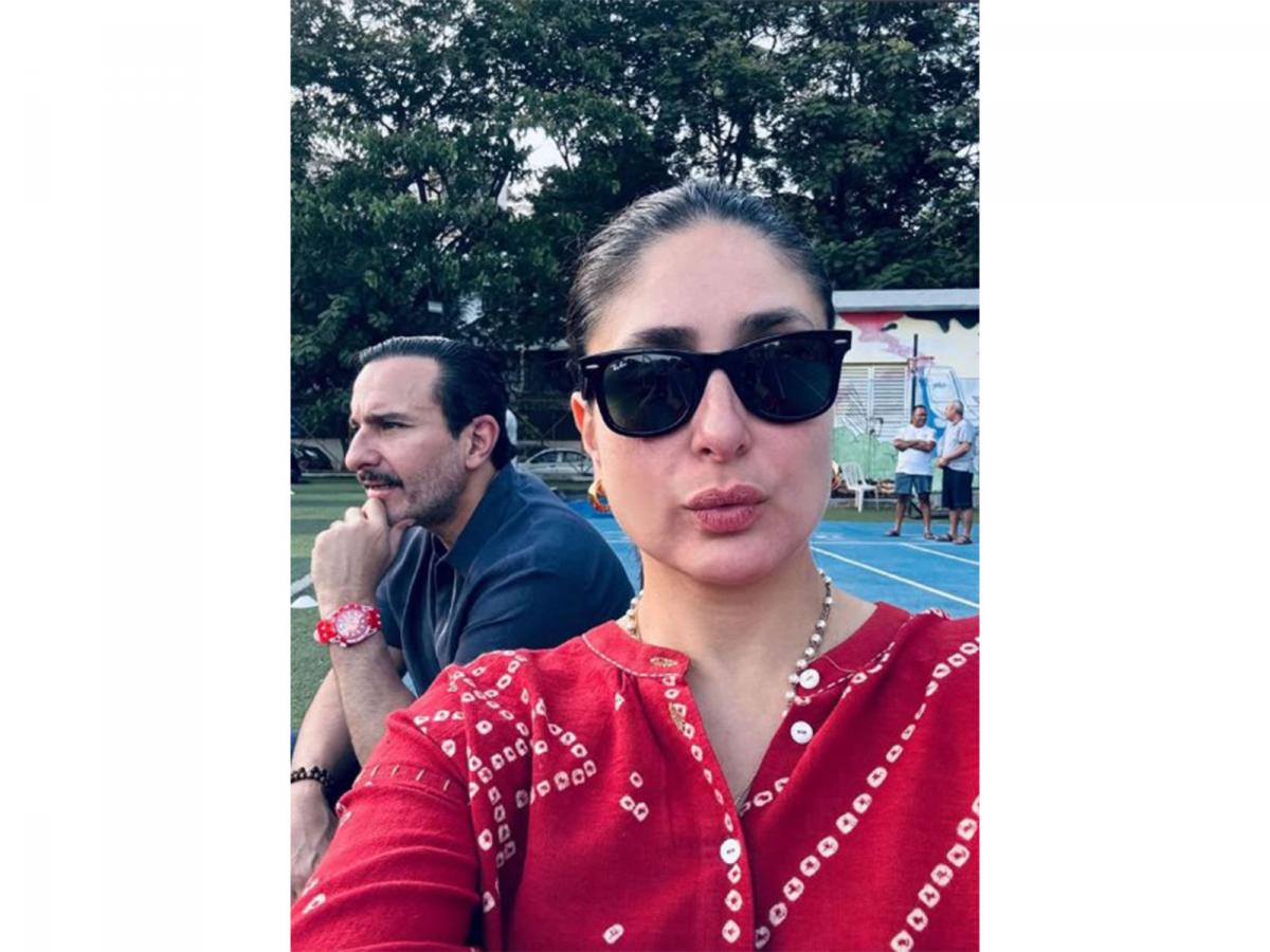 Mumbai (Maharashtra) [India], April 4 : Bollywood couple Saif Ali Khan and Kareena Kapoor Khan on Saturday stepped out in the city to take their kids to the playground.