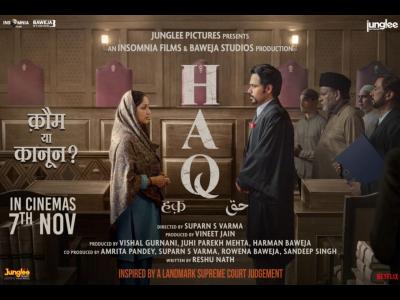 With powerful performances from Yami Gautam Dhar and Emraan Hashmi, the poster is a visual embodiment of the storm brewing between belief systems and the justice system. Also featuring Sheeba Chaddha, Danish Hussain, and Aseem Hattangady in pivotal roles, HAQ is a timely and gripping courtroom drama for our times. Produced by Junglee Pictures, in association with Insomnia Films and Baweja Studios, HAQ releases in theatres on 7th November 2025.