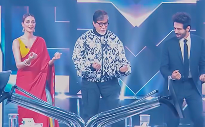 Along with Kartik, Ananya Panday, who is also seated on the hot seat, was seen embracing her Gen Z roots and giving Big B a playful crash course in Gen Z slang.