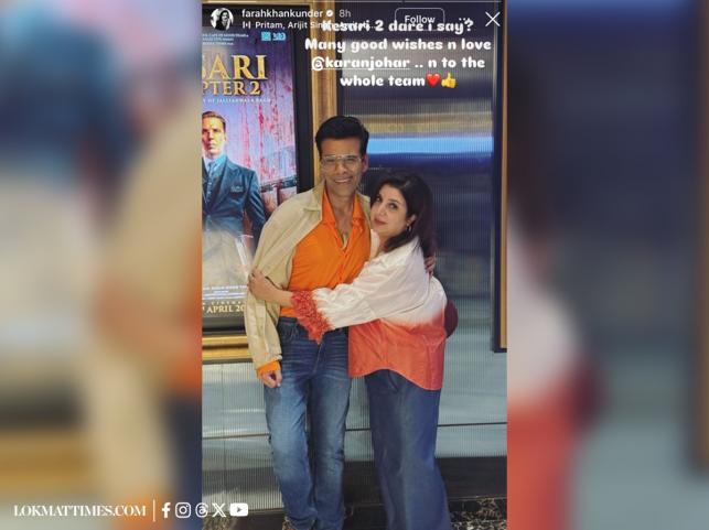 Farah Khan posted a picture with Karan Johar from the screening of the movie and wrote, “Kesari 2, dare I say? Many good wishes and love @karanjohar… and to the whole team.”