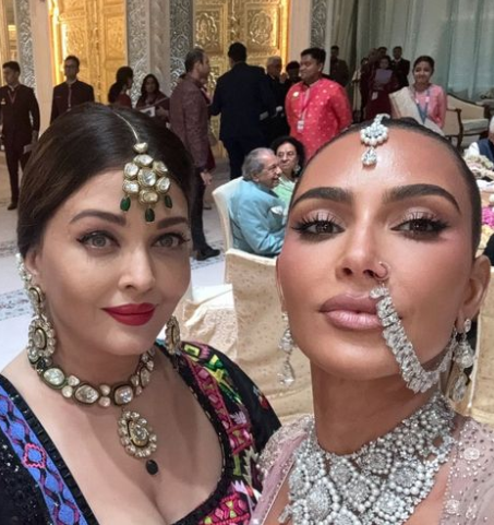 The Kardashian sisters, who arrived in India early Friday morning, ended their first visit to the country on a high as among the most influential international guests at the grand Ambani wedding festivities. Hours ago, Kim shared a selfie with Indian star Aishwarya Rai Bachchan from the blessing ceremony of the newlyweds on Saturday night.