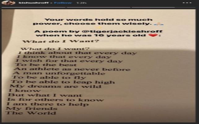 Krishna Shroff shares a poem written by Tiger during his teenage years