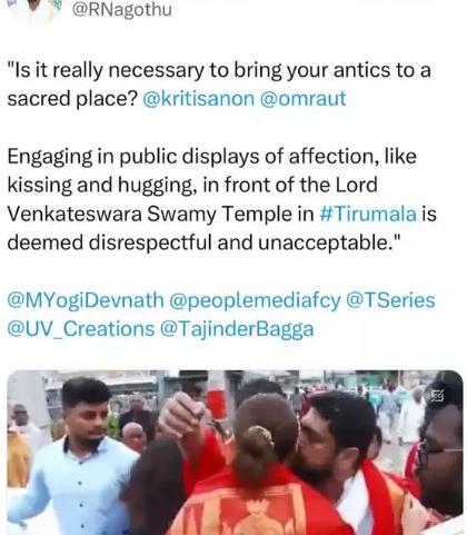 Kriti Sanon and Adipurush director Om Raut's kiss at Tirupati temple sparks controversy