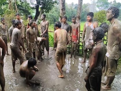 Majuli (Assam) [India], April 15 : In a striking celebration of tradition and community, Assam's river island Majuli came alive with a centuries-old ritual as devotees gathered at Sri Sri Auniati Satra on Wednesday to mark Boka Bihu, welcoming the Assamese New Year, Bohag, with an unusual mud-smearing practice.