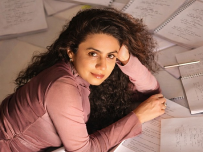 Manasi, who is also a producer, took to Instagram, where she shared a string of images of herself lying on the floor surrounded by numerous printed script pages and notebooks spread all around her.