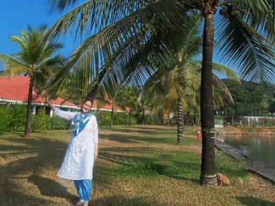 She admitted that she is in love with the slower rhythm of life she is experiencing in Kerala, along with coconut trees and soft skies.