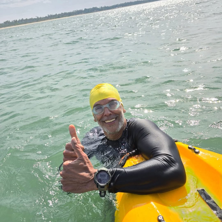 Just like most of his achievements, Milind's better half, Ankita Konwar, accompanied him this time as well. She also completed her first 10-kilometer swim in a sea.