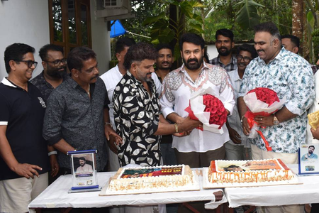 The pictures that the Mohanlal posted showed that the actor had cut a cake on the occasion.