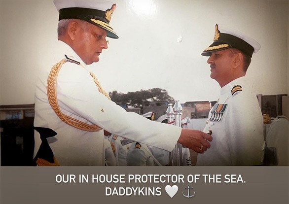 SHANO VARUNA" The actress shared a picture of her father, Anil Kumar Dutta, on social media and wrote, "OUR IN HOUSE PROTECTOR OF THE SEA. DADDYKINS"