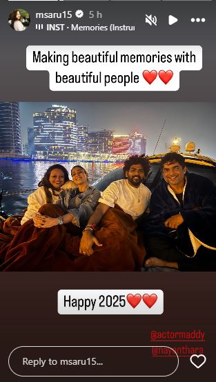 Then, Nayanthara re-shared it and captioned, "The best time with sweetest Maddy sir and Sarita ma'am. Such a surreal night."