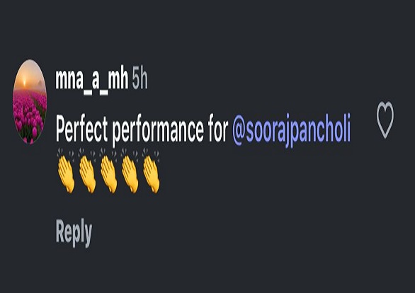 One netizen wrote, “Perfect Performance for Sooraj Pancholi,” while another wrote, “Sooraj Second half…💥Salman Bhai ne sahi bola; Abhi raat hai kal Sooraj chamkega.” A user commented, “Mera bhai, more power to you! We wish you good luck for the new beginnings again,” and another commented, “Fast fast you’ll have new movies, projects so we can watch u more on big screens.” Another comment read, “Awesome..your debut movie of Hero was good, same vibe..you should keep doing films..future star,” and the list of praises seems never-ending for Sooraj.