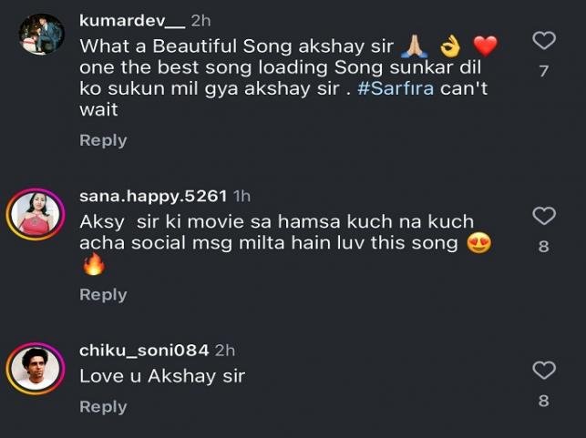 The latest track 'Khudaya' from the film 'Sarfira' has become quite the sensation, capturing the hearts of listeners across the country. The song, featuring the charismatic Akshay Kumar and the talented Radhikka Madan, has been praised for its soulful and melodious composition. Social media platforms are abuzz with netizens expressing their admiration for the song. The Sufi-inspired composition and impactful lyrics have struck a chord with listeners, many of whom have taken to their social media platforms to share their emotional reactions. Comments such as "listening to 'Khudaya' on loop," "this song is beautiful," and "it touches my heart and leaves me teary-eyed" are just a few examples of the overwhelming praise the song has received. Fans are celebrating 'Khudaya' noting how it stands out in an era where such moving and heartfelt music is rare.