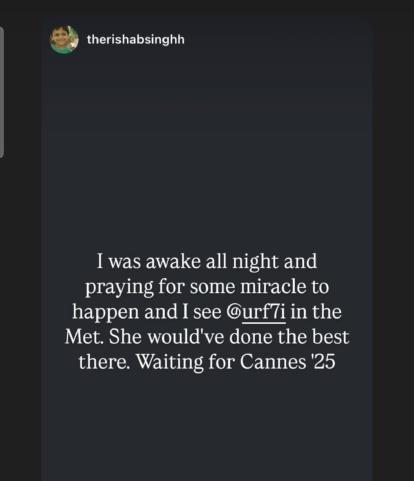 "The only Indian who can rock any look especially Met Gala is one & only @urf7i ❤️" wrote a social media user, and another wrote, "@urf7i would have slayed the Met Gala." Another user shared a post of Jenna Ortega slaying an outfit made of rulers, and wrote, "No but when Uorfi does this & MUCH MUCH MORE BETTER THAN THIS, she's called outrageous. Hypocrisy at its peak." A user also wrote, "I was awake all night and praying for some miracle to happen and I see @urf7i in the Met. She would've done the best there. Waiting for Cannes '25," and another wrote, "Met Gala needs @urf7i." A user also wrote, "Let's get @urf7i on Met Gala guys next year. She will slay in seconds."