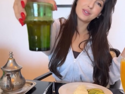 In a video shared on her social media, Nora is seen preparing a healthy breakfast and enjoying a glass of tea. She also demonstrates the traditional Moroccan way of pouring tea, holding a silver kettle high above the glass and pouring it smoothly without spilling.